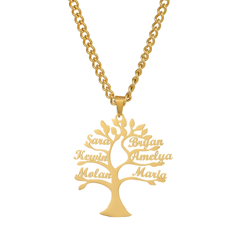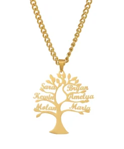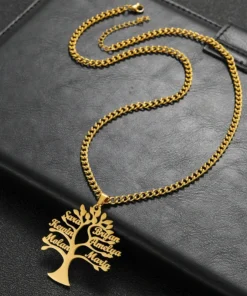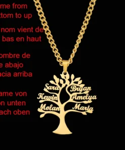 Exprimez vos liens familiaux et votre amour éternel avec ce Collier Arbre de Vie personnalisé, gravé avec les prénoms de vos proches pour un bijou unique et symbolique.